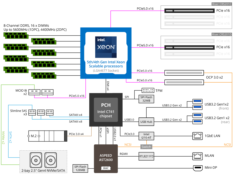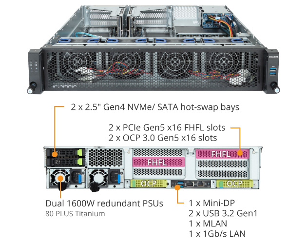 - 2 x OCP 3.0 Gen5 x16 slots