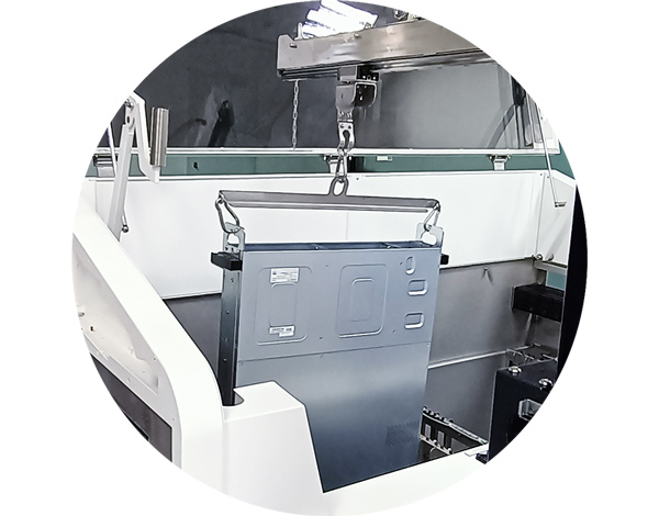 Servers must be installed vertically in the tank, and this lowering or raising of servers is due to an optimized tank design for single-phase immersion cooling. Therefore, the server installed upright needs to have rigid and firm structural integrity to ensure the chassis will not deform. Also, due to the vertical design, the cable routing and maintenance are also different than traditional data centers. Therefore, we re-examine the design and strengthen the server chassis for immersion cooling and reroute the cables. For instance, I/O ports are all arranged on the rear side facing up, and the network cables need to be rerouted to the sides so that maintenance can be quick and easy. Also, to make it more convenient for IT to install or remove a server, a bracket was added to allow hooks to move the server.